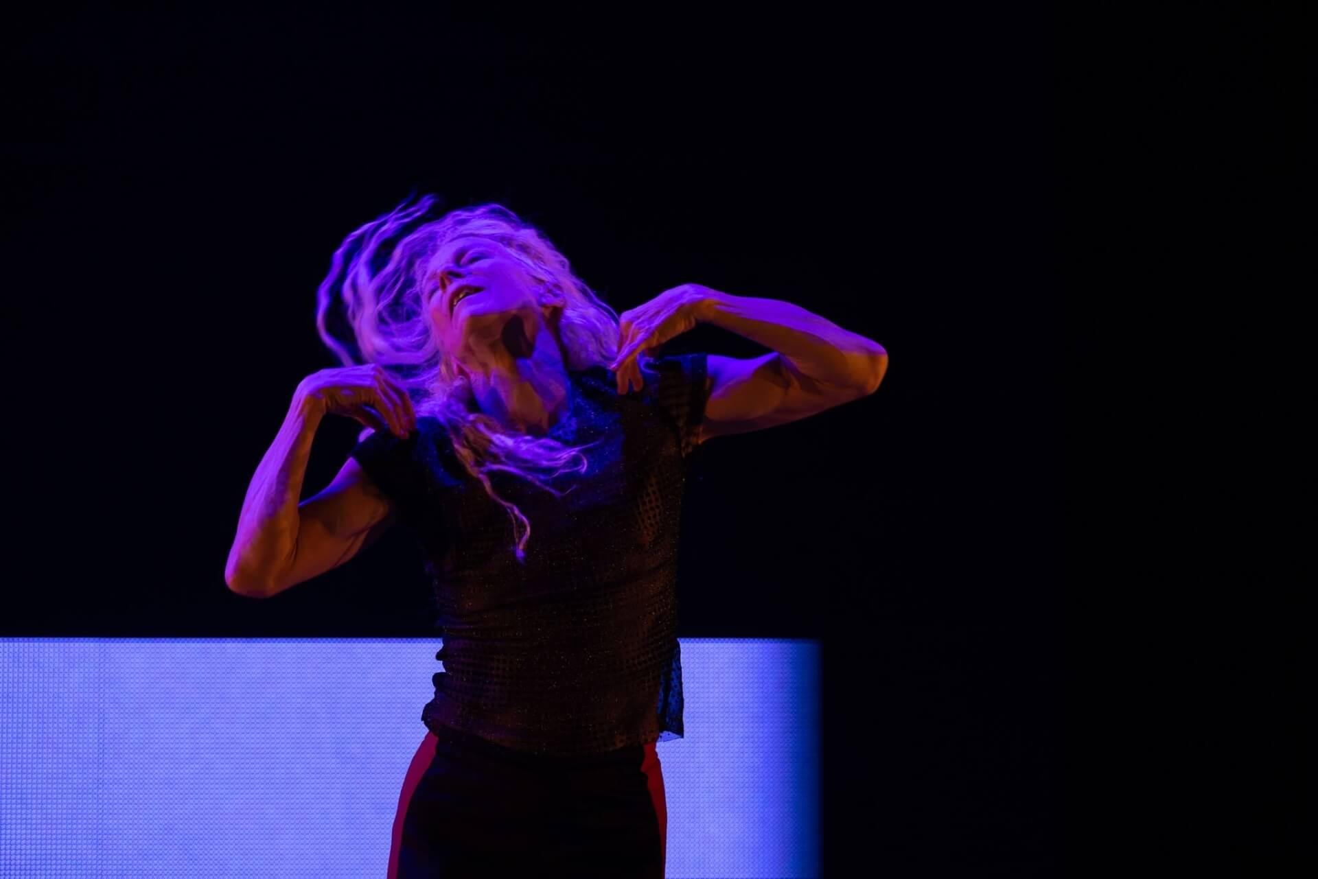 L’infini répertoire gestuel de cette très grande danseuse, tout comme l’immensité du territoire qu’elle occupe, ne finit plus de nous étonner. Véhiculé par son corps léger, insouciant et sans âge, le moindre sautillement, rebond, jeu de main ou d’épaule, à la frontière du mime et de la danse, inspire et intrigue. On ne savait pas qu’on pouvait aller par là. La très grande part laissée à l’ombre sur la scène, à peine trouée par un gros spot orangé par instants, renforce la dimension spirituelle et intime de son solo.