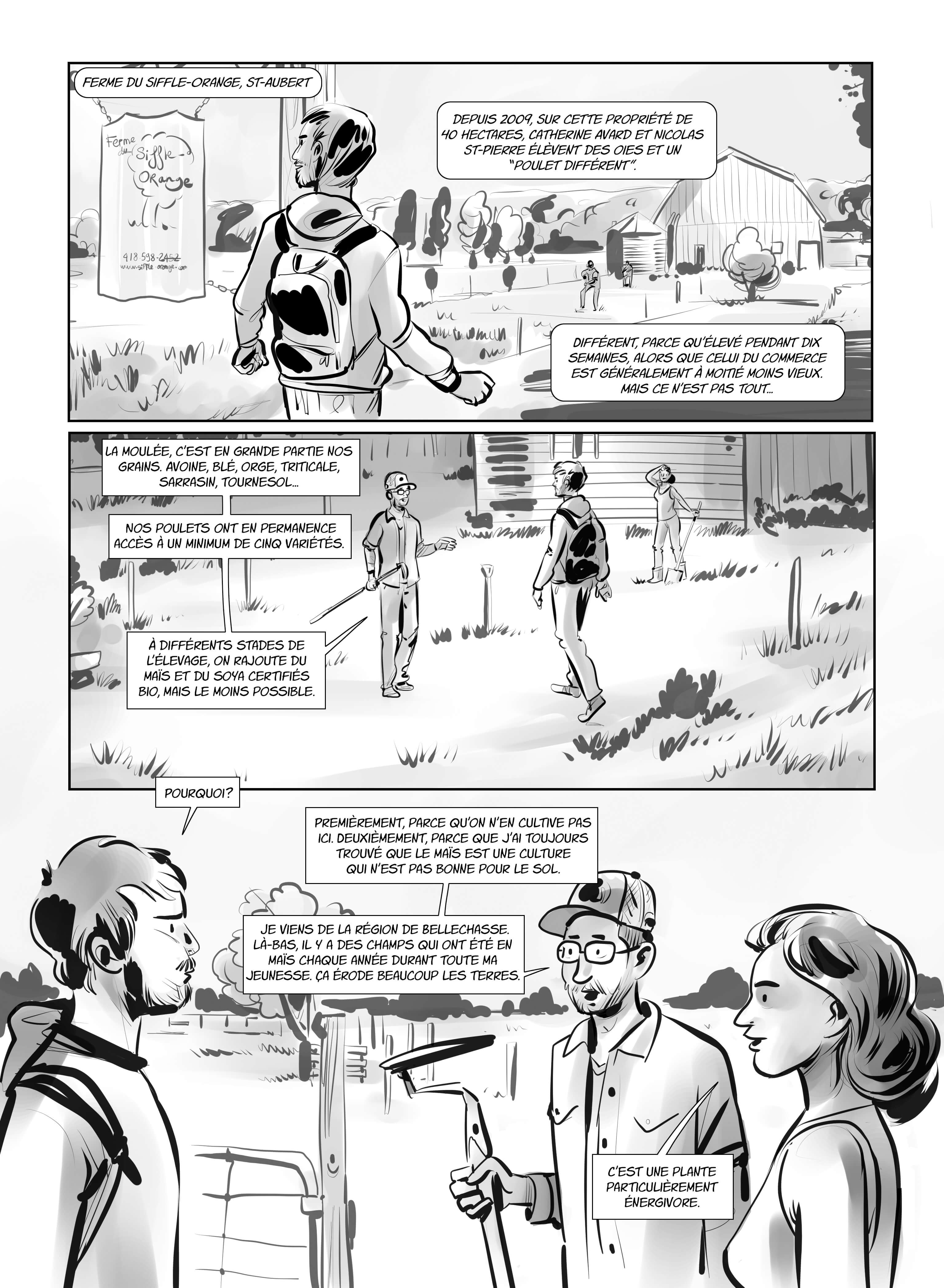 Médaillés d’or aux Prix du magazine canadien pour leur bédéreportage publié dans NP06 («La pointe des utopies, sur les rails du Bâtiment 7»), Rémy Bourdillon et Pierre-Yves Cezard ont sillonné les campagnes pendant un an. Ils ont rencontré de nombreux agriculteurs aux prises avec l’intransigeance de l’upa—notamment sa réticence à assouplir le système de la gestion de l’offre pour les petits producteurs, qui aspirent à mettre en place une agriculture différente au Québec.