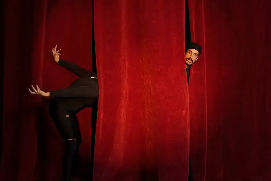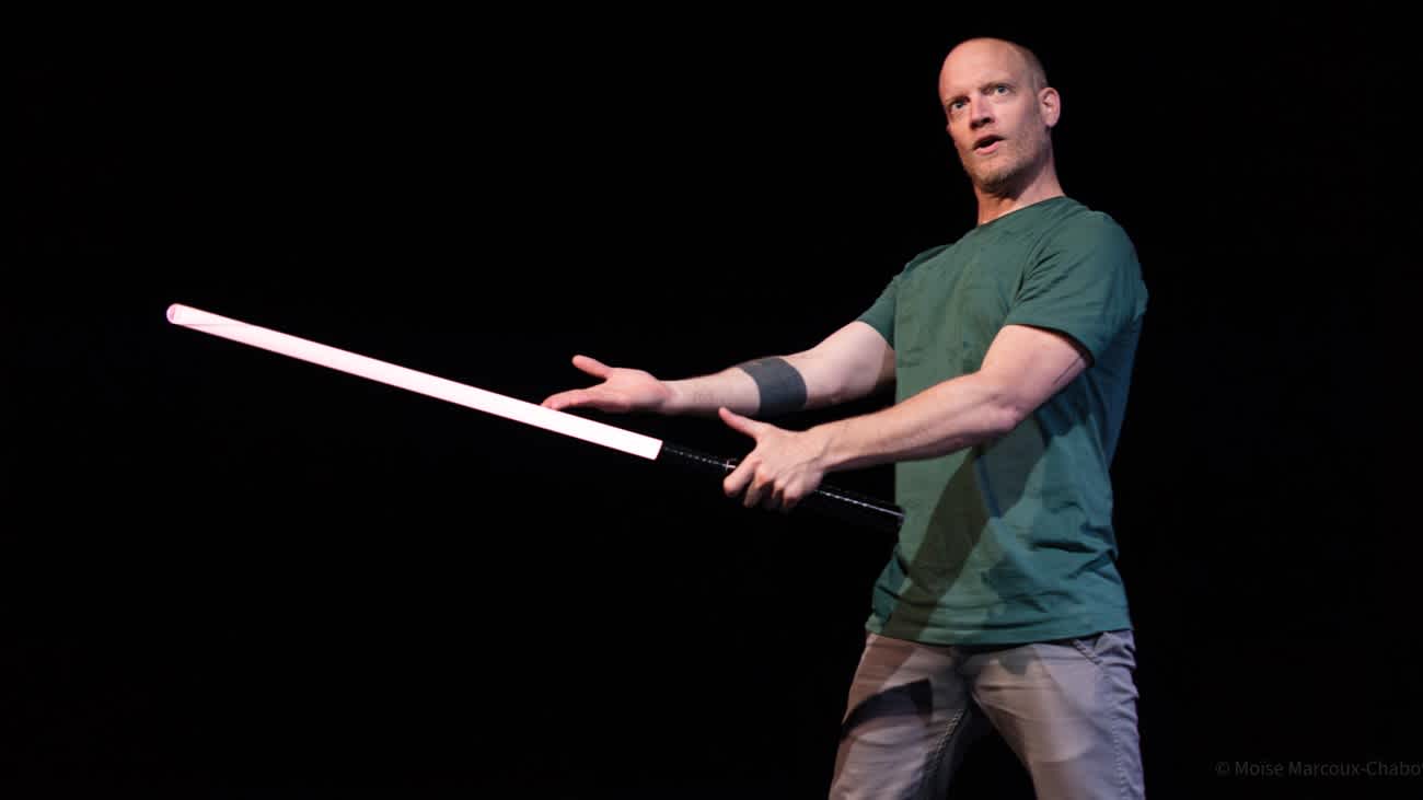 On n’est tellement plus habitué·e·s à cet univers-là sur nos scènes, celui de la farce, du mime, du jeu masqué, qu’on s’en donne à cœur joie. On rit à gorge déployée des mimiques de vicieux de Gabriel-Antoine Roy, la voix éraillée et la main dans le collant, de l’humour de répétition d’Étienne Lou, de ses masques et de son accent forcé. Leur liberté et leur audace nous soufflent et nous emportent. Alors, quand on comprend que c’est de la mort qu’on nous parle, de la passion de vivre comme seul moyen de la tenir à distance, on frémit et on réalise qu’on vient d’en faire l’expérience, tou·te·s ensemble dans la salle. Un moment de grâce.