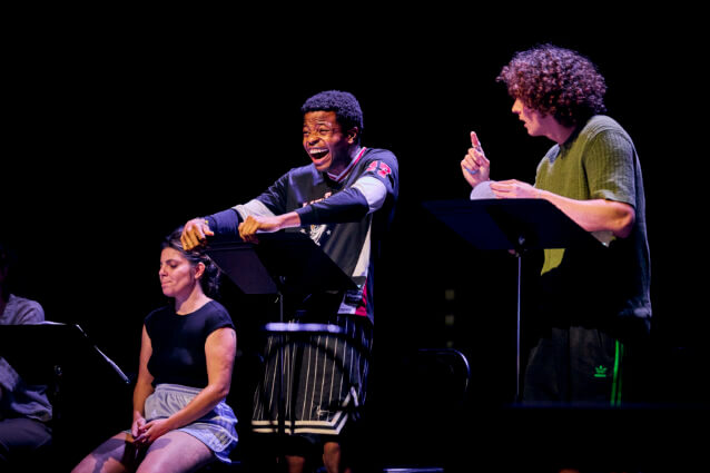 L’ambiance cabaret décontracté typique du festival et la belle brochette d’interprètes qui se tiennent ce jour-là derrière leur lutrin accrochent immédiatement un sourire sur les faces. Et l’histoire portée par le talent de dialoguiste de Maud de Palma-Duquet ne nous déçoit pas: des ados sous mush déterrent des arbres dans les jardins d’une banlieue cossue, une mère riche et désespérée soudoie un directeur d’école, une cellule terroriste écolo s’autofinance en vendant des muffins et Paul Ahmarani imite un écureuil. Du bon matériel pour se taper sur les cuisses. Sauf que la souffrance des quartiers bétonnés, durant ce printemps de canicule, est bien réelle, et que certain·e·s y laisseront leur peau. Sur scène, la température grimpe jusqu’à l’explosion.
