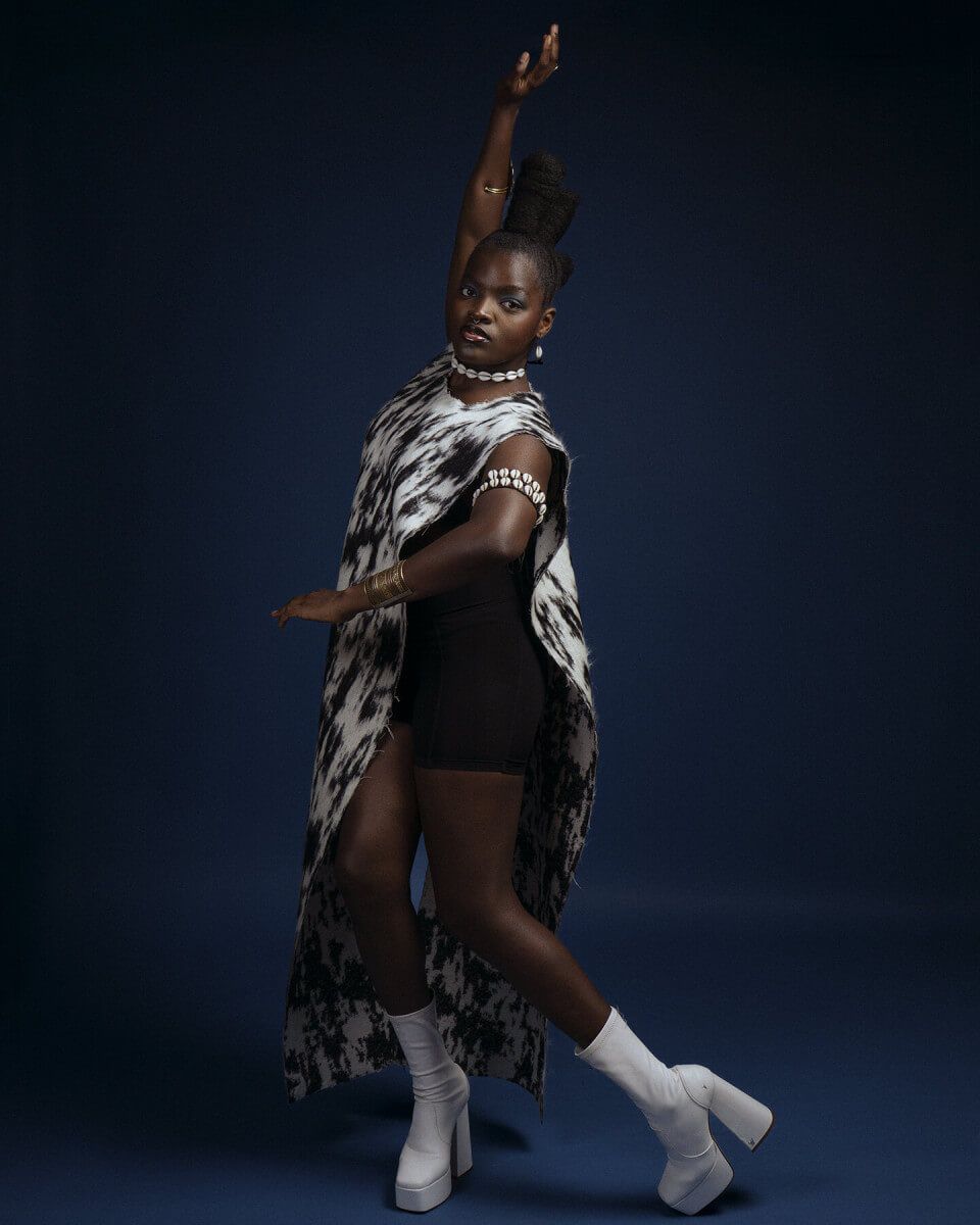 Une artiste pluri/interdisciplinaire camerounaise au charisme fou à suivre sur les réseaux sociaux et sur scène. Ses œuvres voguent entre la spiritualité, le stylisme, la neuroscience et le chant, entre autres choses.