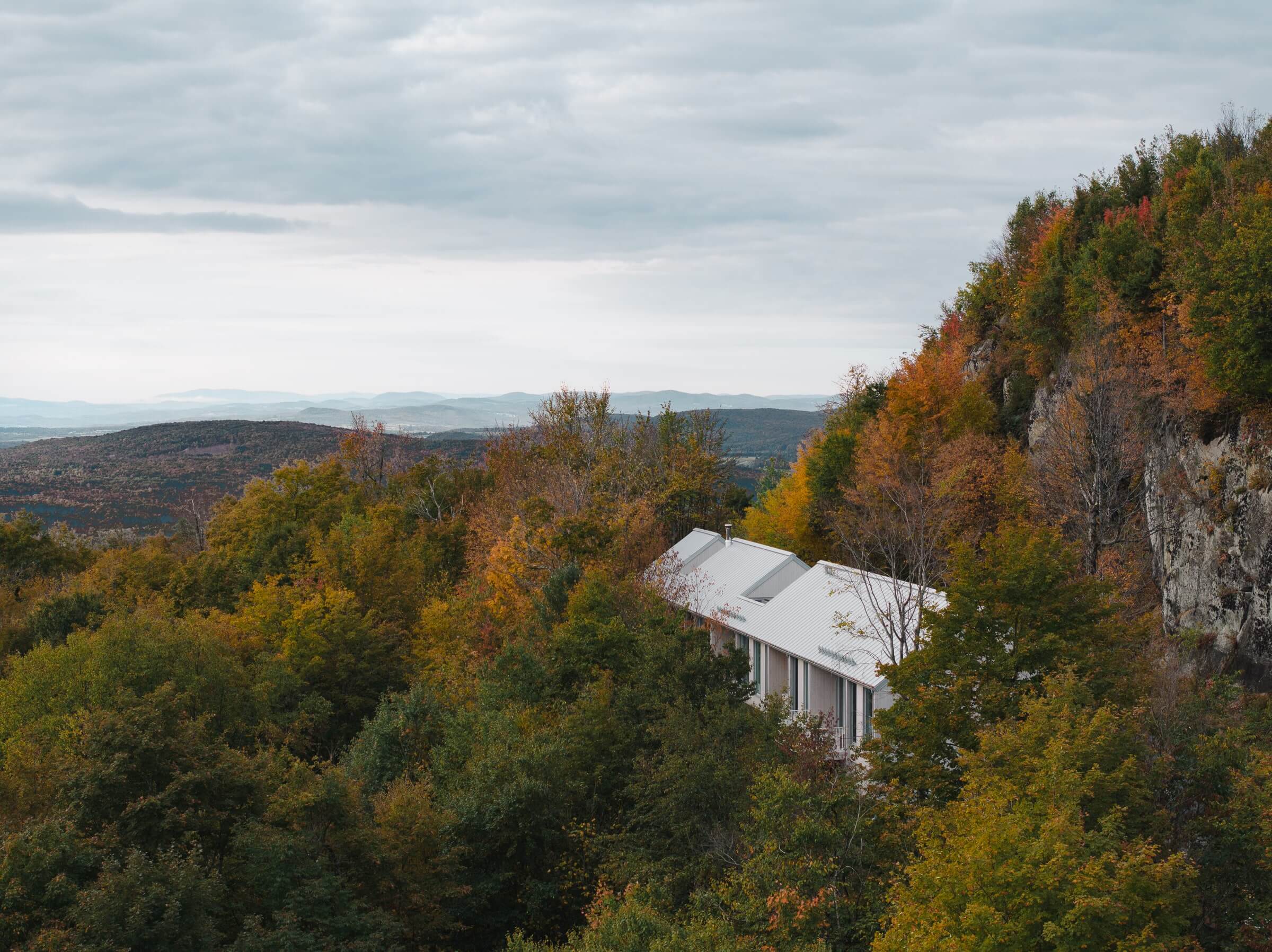 Si l’expression «bain de forêt» était une maison, elle serait probablement cette résidence multigénérationnelle du canton de Potton, qui s’étire entre falaise, lac et vallons, et qui s’efface pour donner toute la place au paysage environnant.