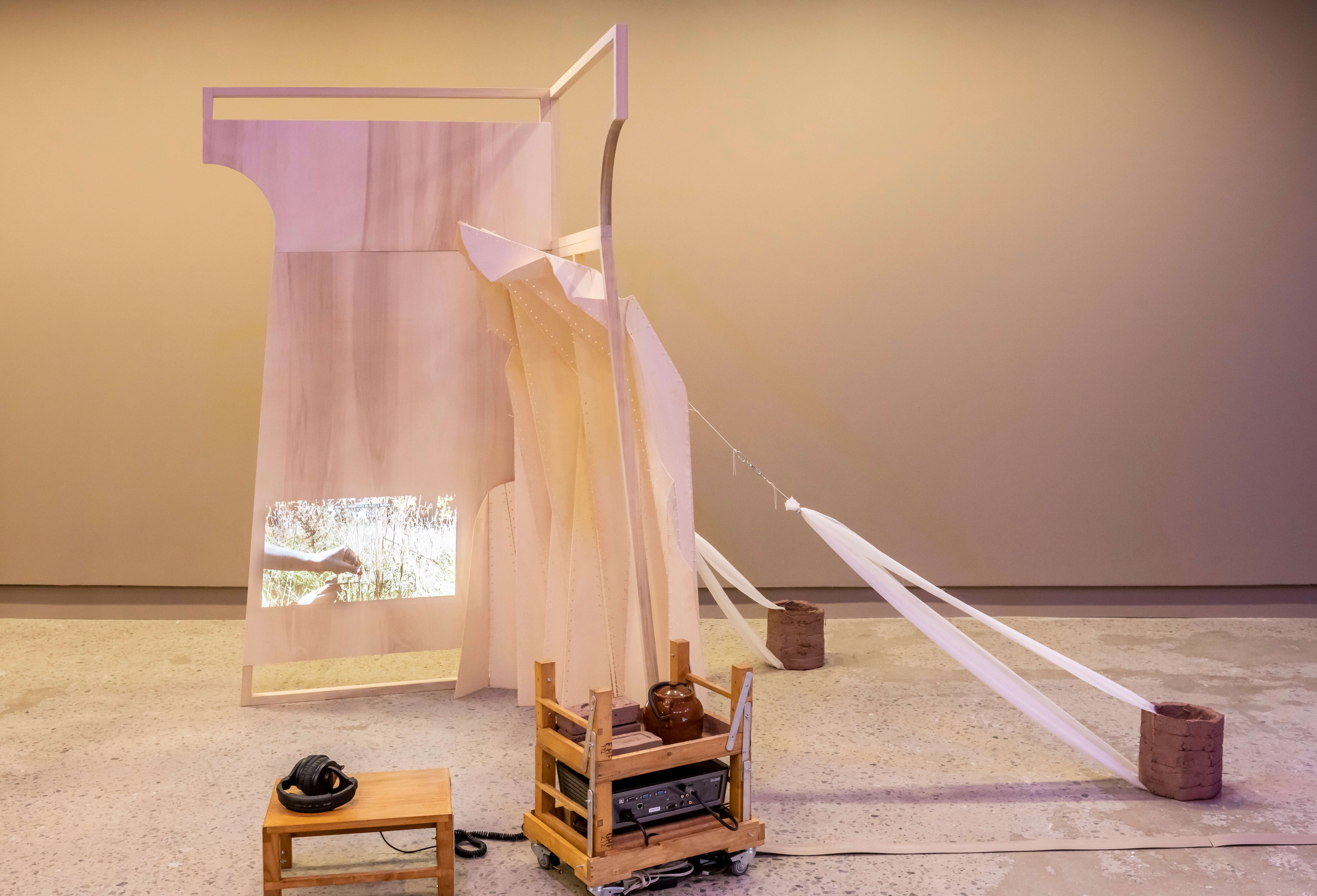 Aux côtés de la commissaire Alexandra Tourigny Fleury, les artistes Alice Longpré, Catherine Magnan et Christina Martin ont mené une recherche-création autour de l’art et de la maternité, pour donner vie à des installations marquées par la résilience, la sororité et le jeu.