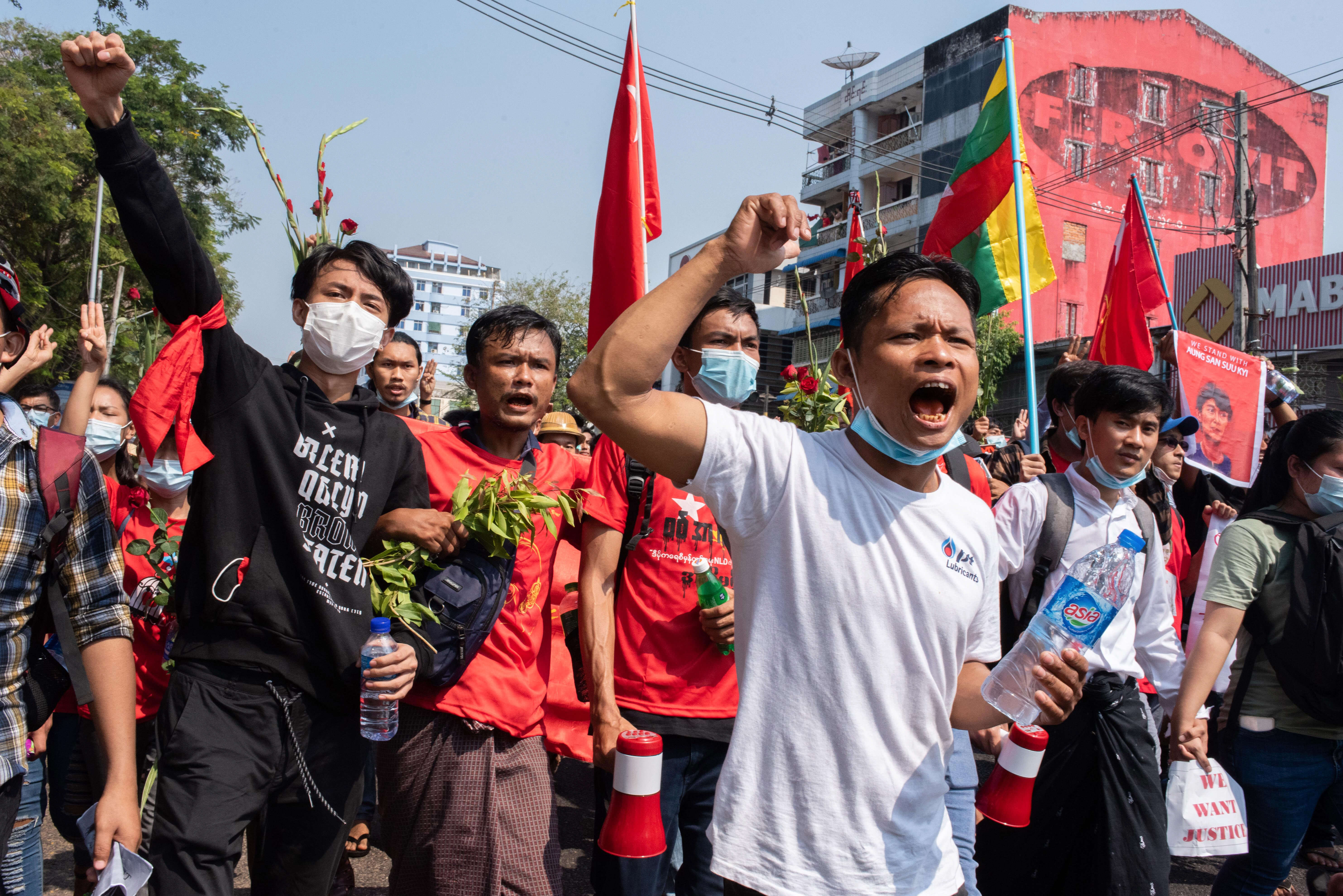 RANGOUN, BIRMANIE—Ici, on est souvent réveillé tôt, par le bruit du broyage des épices nécessaires à la préparation du petit-déjeuner, ou par les éclats de voix des vendeur·euse·s de rue en pleine tournée matinale. Le 1er février, pourtant, le calme de la nuit s’étire pendant les premières heures matinales. La nouvelle se répand à travers le pays: Aung San Suu Kyi, le président Win Myint et une dizaine de figures de proue de la Ligue nationale pour la démocratie ont été arrêtés à leur domicile, sous l’ordre du général en chef des armées, Min Aung Hlaing.